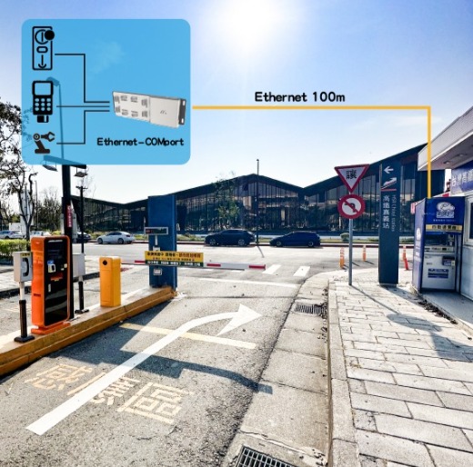 There are many device at entrance and exit of parking lot, such as payment machine, coin casher, card reader, monitor, camera, and gate controller, which satisfy requirement of parking management. In traditional construction, use kinds of cable, RS232, USB, HDMI..etc, to connect with the near IPC system, it would face some trouble issues that signal decay, not enough I/O interface of IPC, and reliability. Currently, use our Ethernet-Comport and Ethernet-HDMI/USB product, which can make all device interfaces would be transfer to an Ethernet/PoE interface, and simplify difficult deployment, especially, direct-compatible with native parking management system of IPC.